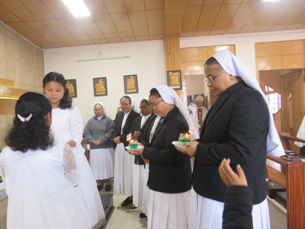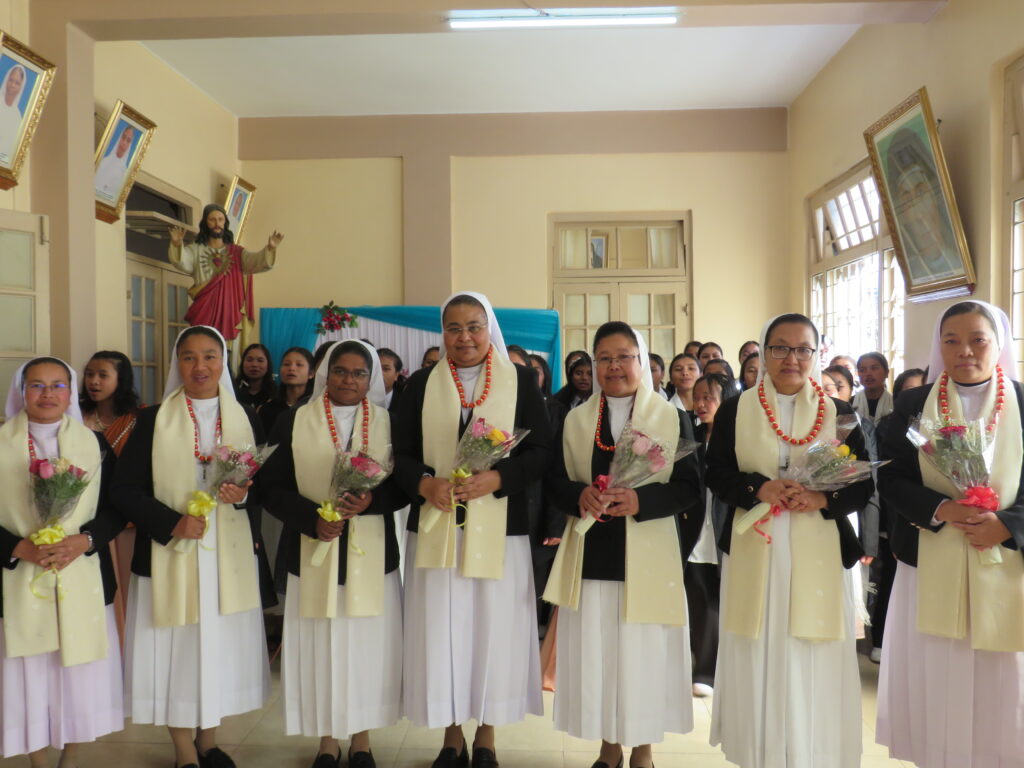 The historic event was graced by the presence of Sr. Bridgid Diengdoh, General Councillor for Evangelization, and Delegate of the Superior General, and witnessed by many sisters from neighboring communities, marking a profound moment of unity and transition.